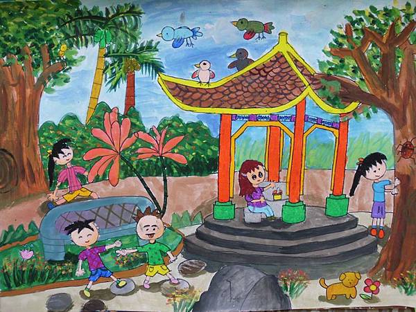 彩畫教學----嘉義公園(五年六班作品欣賞)